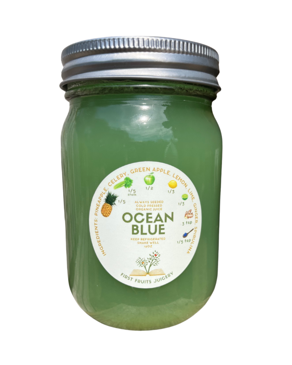 Ingredients: pineapple, organic celery, organic red apple, organic lemon, organic lime, organic ginger, organic blue spirulina